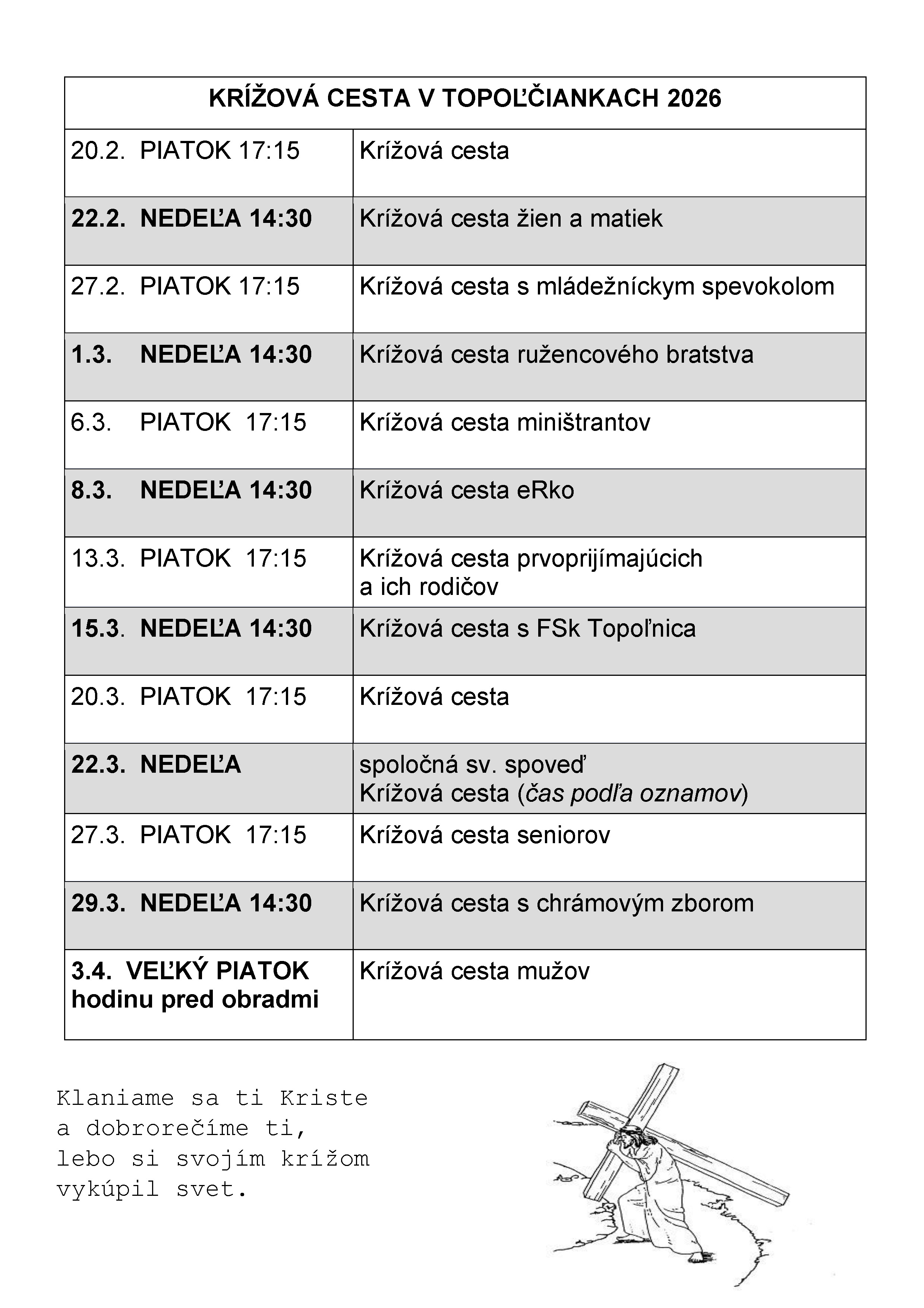 | 20.3. PIATOK 17:15 | Krížová cesta |
